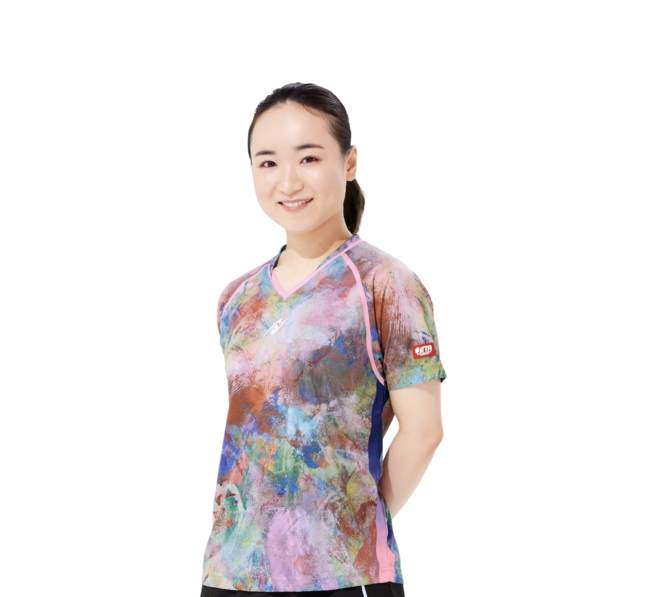 ヘラルボニーさんとのコラボウェア、率直に大好きです!!いろいろな方の作品を見せていただき、一人一人の感性・個性に目が止まりました。この作品で卓球ウェアが作れたらいいな、着たいな!という考えからお話をさせていただいたことをきっかけにコラボレーションが実現したこと、本当に嬉しいです。出来上がるまでの約10カ月はとても楽しみでした。実際のウェアを手にした時、とても素敵で、早く着たくてワクワクが止まりませんでした。